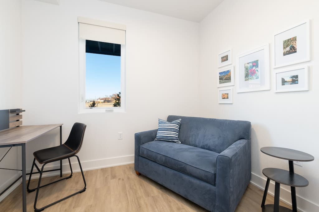 Newly built and expertly decorated with a dedicated workspace that doubles as a sleeping area. Located near downtown Grand Junction, with direct access to the river trail system and Colorado River - stay and play in Western Colorado! I own the unit right next door also in case you need more space. I also have a house in GJ that sleeps 10.